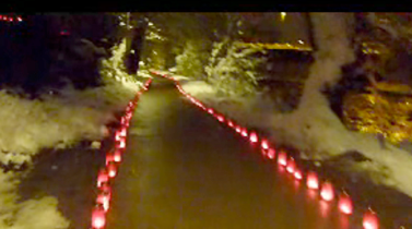 Egal, möglicherweise hat der Böseste dem Energiesparblog ein Video mit der vermutlich unnützesten Beleuchtung der Welt untergejubelt. Jetzt kann der Blogbetreiber auf einen Beratungskunden hoffen. Der Initiator des Lichtermeers hat erstens kein Gespür für die Natur (Lichtverschmutzung an der Mur), zweitens nicht allzu guten Geschmack - in Schweden würden keine Parkwege mit dem kitschigen Rot bepflastert werden, und drittens auch kein Faible für Energiesparlampen - die Lichter auf dem Foto haben zu viel Rot, die Lampen aber eher zu wenig.