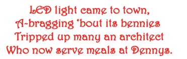 Ob wir bei LED auch mit einer Blase zu tun haben, kann man nicht sagen. Schwindelig wird einem aber dennoch, weil die ganze Lichttechnik nichts anderes mehr kennt. Heute fand ich eine köstliche Abhandlung darüber, dessen Titel so aussieht: