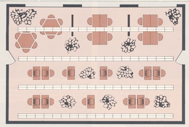 Bildschirme so weit weg wie möglich vom Tageslicht. So weit, so gut. Dass in dem letzten Bild die Blumentöpfe fehlen bzw. die Stellwände, hat mit den Corporate Colours von DIN nichts zu tun. Normen kannten damals Farbe nicht. Aber Bildschirmtische. Und die sahen nie so aus wie in diesem Bild. Die Berufsgenossenschaft hätte deren Betrieb schnell ein Ende gemacht. Die Tische sehen nur deswegen so schmal aus, weil das Konzept sonst theoretisch nicht funktioniert. In der Praxis übrigens auch nicht.