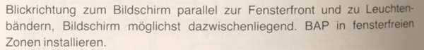 BAP - d.h. Bildschirmarbeitsplatz - in fensterfreien Zonen installieren!