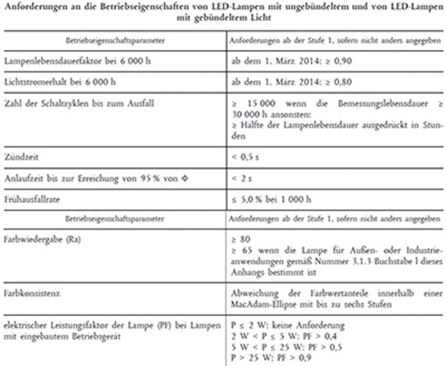 Wie man Fortschritt erzwingen kann, weiß ich leider nicht mehr. Wie man ihn abwürgt, hingegen allzu sehr: Man gründet einen Ausschuss, der über die neuen Ideen brütet, bis sie als faule Eier entsorgt werden. Alternativ kann man Vorschriften aufstellen. Die gibt es, wie es scheint, über LED wie Sand am Meer. Ein kleines Beispiel ist am Ende dieser Seite zu sehen. Es handelt sich um Anforderungen an die Betriebseigenschaften von LED. Aber beileibe nicht um alle. Wo kämen wir denn hin?