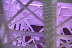 Auf unserer Suche nach einem Fluchtort vor der allgegenwärtigen Blendung, kamen wir auf die glorreiche Idee, uns in der Nähe des Standes eines Herstellers von Straßenbeleuchtung niederzulassen. Da gab es Blendung pur. Moderne LED-Laternen halten sich an keine der Regeln der Lichttechnik. Jetzt hatte ich endgültig verstanden, was ein Professor für Lichttechnik gemeint hatte, als er mir sagte: „Vergessen Sie alles, was Sie über Blendungsforschung kennen. Die Geschichte muss neu geschrieben werden.“ Jetzt kommt zu rosa auch noch grell hinzu.